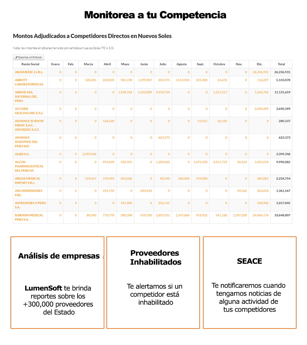 sistema de contratación pública LumenSoft - Monitorea a tu competencia
